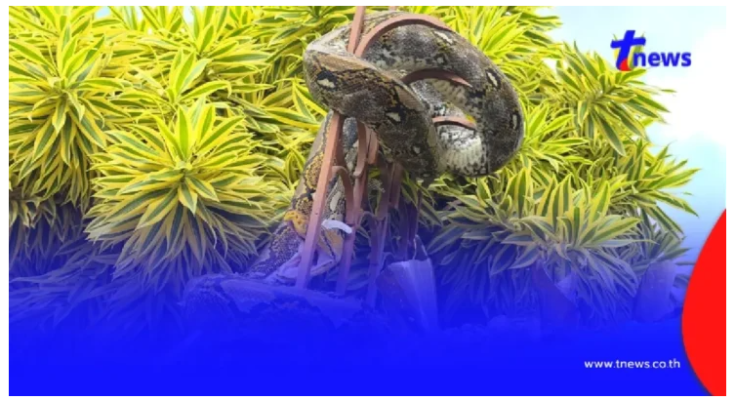 บ้านเลขที่งูเหลือมขนาดใหญ่เข้าบ้าน ก่อนเลื้อยขึ้นไปพันอยู่บนรั้วหน้าบ้าน เจ้าหน้าที่ช่วยจับก่อนปล่อยคืนสู่ธรรมชาติ